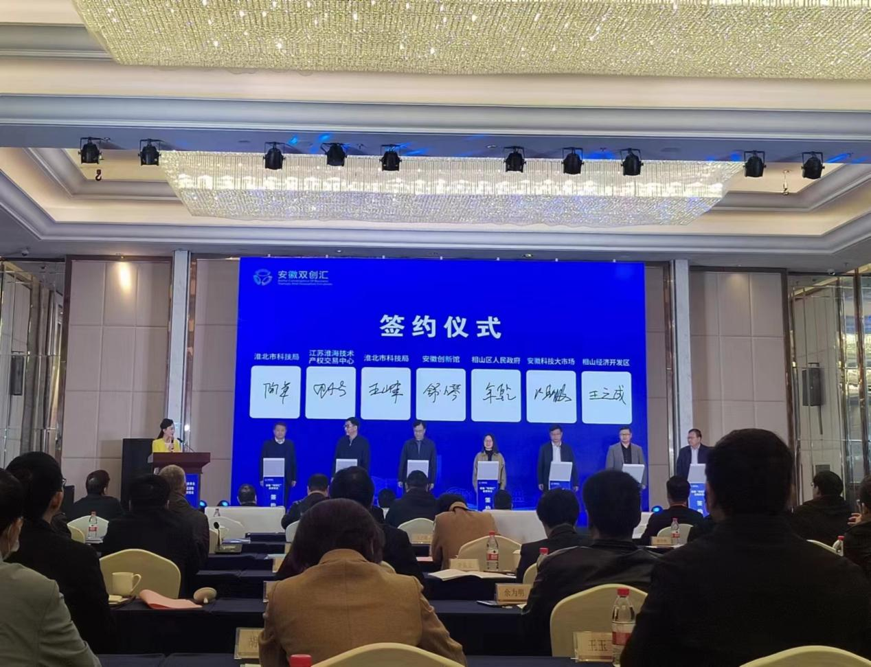 我中心與淮北市科技局在會(huì )上簽訂江蘇淮海技術(shù)產(chǎn)權交易中心淮北分中心建設合作協(xié)議,標志著(zhù)淮海經(jīng)濟區技術(shù)交易網(wǎng)絡(luò )建設進(jìn)入新階段。
