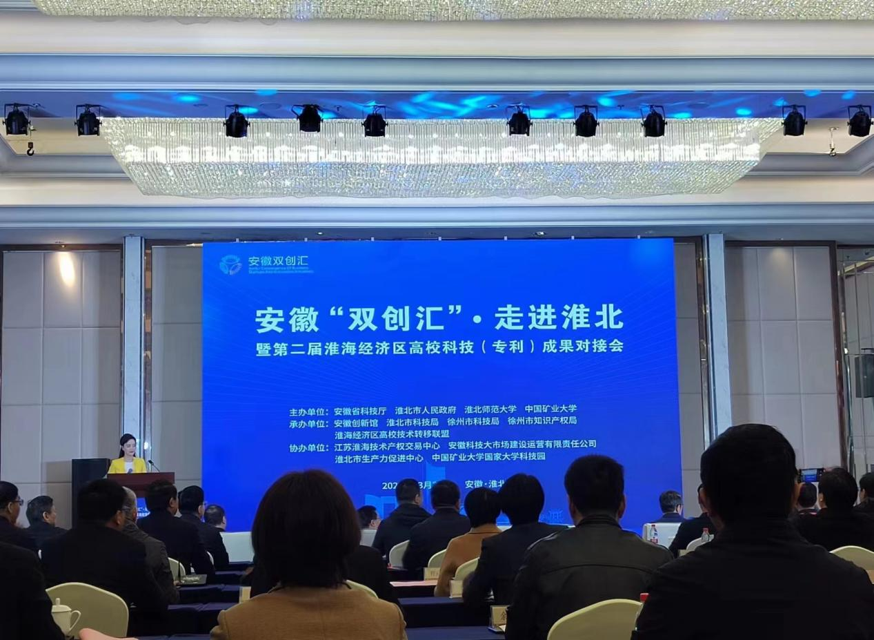 3月31日,安徽“雙創(chuàng )匯”·走進(jìn)淮北暨第二屆淮海經(jīng)濟區高??萍迹▽?zhuān)利)成果對接會(huì )成功舉辦。安徽省科技廳黨組成員、副廳長(cháng)李國陽(yáng),淮北市委常委、秘書(shū)長(cháng)、宣傳部長(cháng)汪繼宏,淮北師范大學(xué)校長(cháng)姚佐文出席并分別致辭。中國礦業(yè)大學(xué)科研院長(cháng)冉進(jìn)財、徐州市科技局二級調研員謝德明、商丘市科技局二級調研員徐守民、徐州市知識產(chǎn)權局四級調研員余為明等出席了會(huì )議。中國礦業(yè)大學(xué)、商丘師范學(xué)院等16家淮海經(jīng)濟區高校技術(shù)轉移聯(lián)盟成員單位領(lǐng)導、淮北市各縣區分管負責同志和科技局、知識產(chǎn)權管理部門(mén),安徽省內外有關(guān)技術(shù)轉移機構、金融機構代表、相關(guān)企業(yè)、新聞媒體代表近200人參加活動(dòng)。