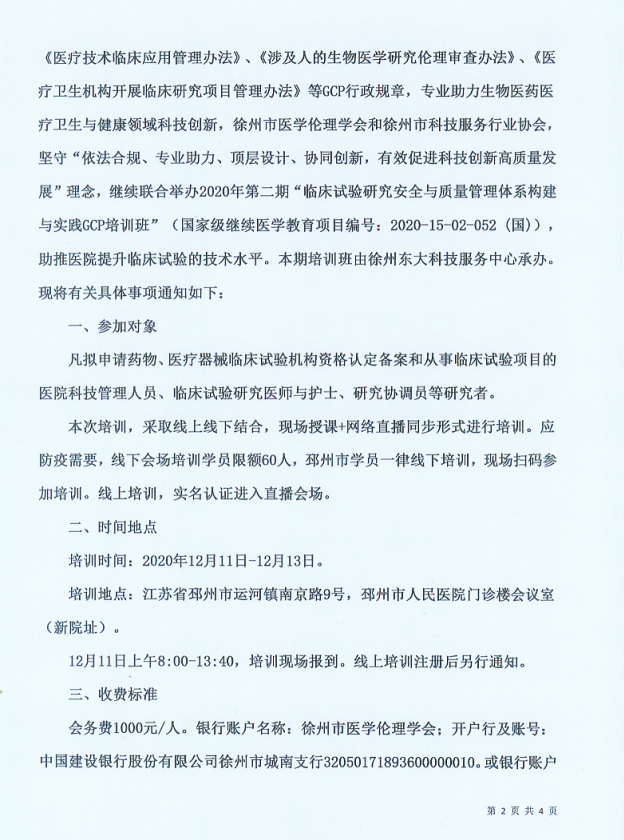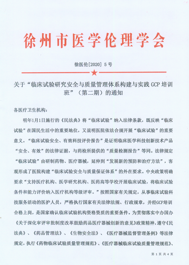 關(guān)于“臨床試驗研究安全與質(zhì)量管理體系構建與實(shí)踐GCP培訓 班”(第二期)的通知