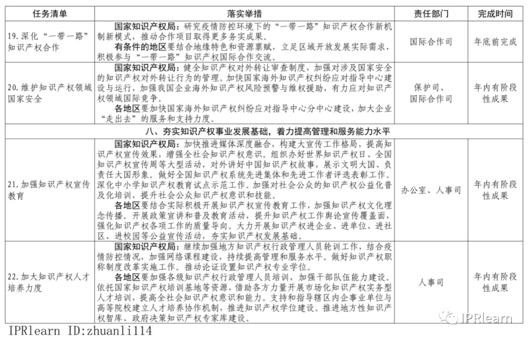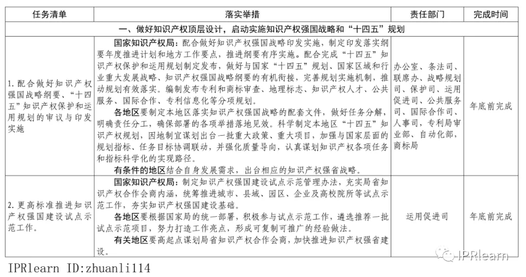 2021年推動(dòng)知識產(chǎn)權高質(zhì)量發(fā)展任務(wù)清單