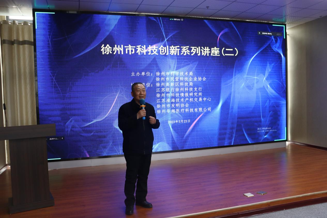 2023年3月23日下午,徐州市科技局與徐州市民營(yíng)科技企業(yè)協(xié)會(huì )聯(lián)合徐州高新區科技局、江蘇銀行徐州科技支行、徐州市科技情報研究所、江蘇淮海技術(shù)產(chǎn)權交易中心、徐州市發(fā)明協(xié)會(huì )、徐州華越醫療科技有限公司,在徐州高新區徐州華越集團科技大廈多媒體會(huì )議室舉辦了“徐州市科技創(chuàng )新系列講座(二)”。本次講座活動(dòng)是匯聚政府部門(mén)、金融機構、企事業(yè)單位、社會(huì )團體組織等各類(lèi)資源共同精準服務(wù)科技企業(yè)的又一次探索和嘗試。協(xié)會(huì )秘書(shū)長(cháng)蔡文禮主持,100余家科技企業(yè)負責人、專(zhuān)業(yè)技術(shù)人員通過(guò)線(xiàn)上、線(xiàn)下方式參加了講座。